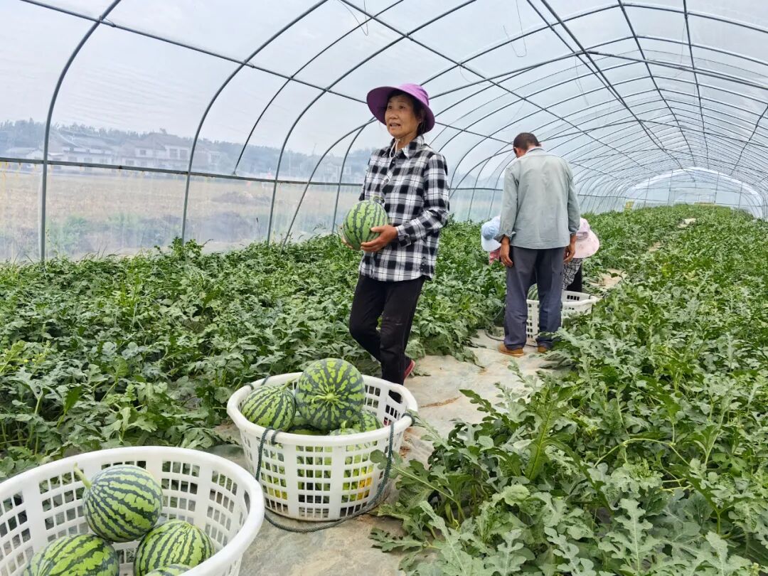 “我们合作社现有西瓜大棚60个,主要种植美都品种,甜度达13.2,亩产超8000斤,预计总产值20余万元,可带动51名农户就业,实现人均年增收3万元。”禾盈专业种植合作社负责人李华笑得合不拢嘴。