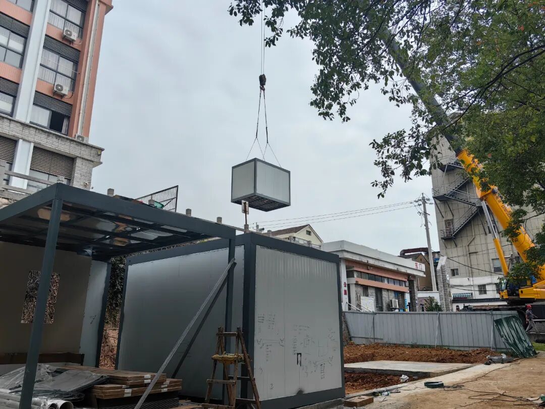 (记者 叶振)9月7日早上7点,市职教中心附近的便民驿站施工现场已是一片忙碌。在指挥人员精准调度下,吊车将便民驿站主体平稳起吊,缓慢移动至预定基础点位。此前,基础部分已完成混凝土浇筑与砖砌施工,为驿站稳固安装提供保障。