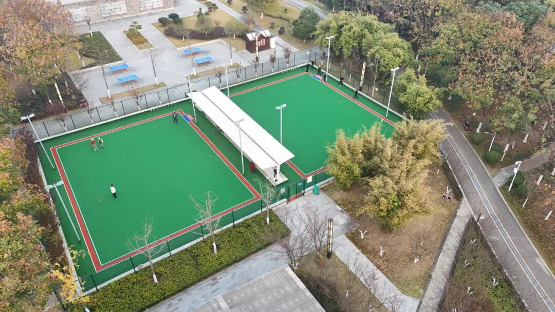 经过系统性改造后,乐乡公园门球场不仅完善了排水系统,实现场地标准化,还增设了围栏等规范化设施,为门球爱好者提供更安全、舒适、专业的运动环境。