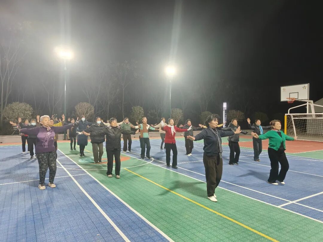 广场舞旋律跃动、篮球场上比拼正酣、乒乓球台前老少挥拍……傍晚时分,老城镇朱家埠村的和美乡村健身广场上灯火通明,村民在家门口就能体验健身与休闲的快乐。