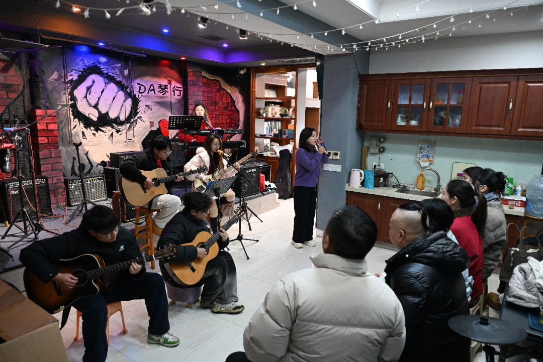 排练现场,现代吉他与传统民乐碰撞出独特火花,乐队演绎的《珊瑚颂》在保留经典韵味的同时,融入吉他弹唱创新,成为晚会一大亮点;快板《冲刺百强干劲高》节奏铿锵,以传统曲艺展现松滋人民奋发向上的精神风貌;省级非遗“九莲灯”,以婉转舞步展现民俗底蕴。