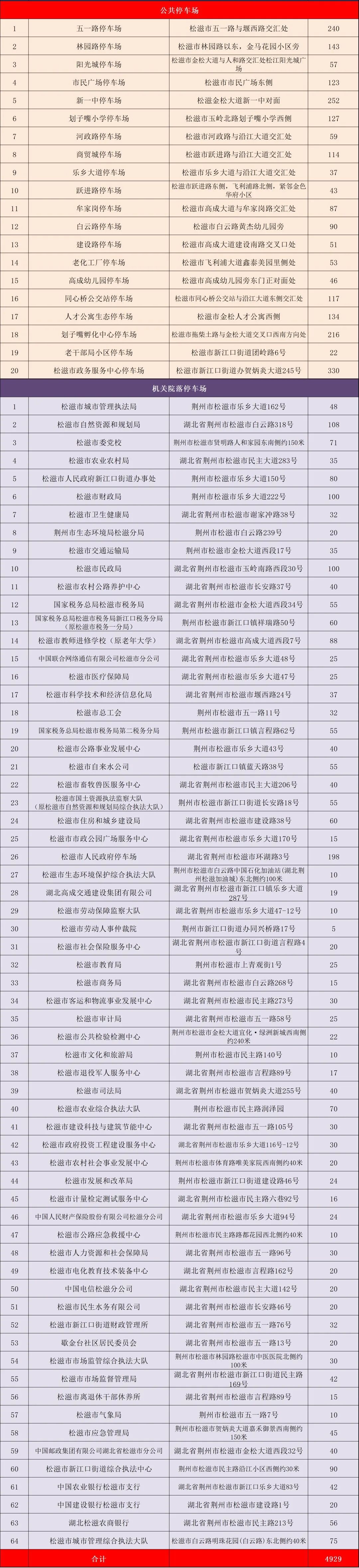 免费车位一览表