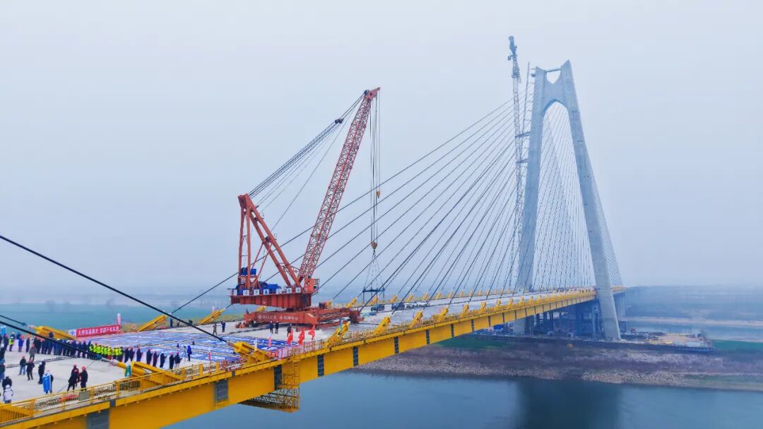 ▲松西河特大桥胜利实现双幅合龙。