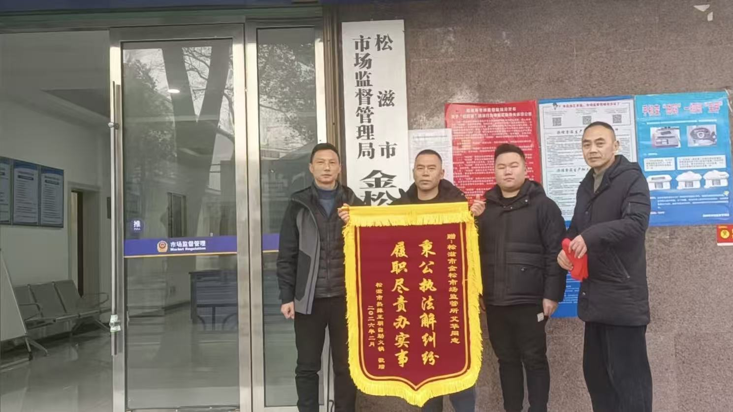 (通讯员 张子璇)“虽然是‘被投诉’的一方,但我们真心感谢市场监管部门的公正调解。你们没有简单‘一刀切’,而是帮我们找问题、促规范,让我们真正意识到管理上的不足。”近日,松滋市热辣王朝餐饮店负责人专程来到松滋市市场监督管理局金松市场监管所,将一面印有“秉公执法解纠纷,履职尽责办实事”的锦旗送到工作人员手中,言语间满是感激与敬意。
