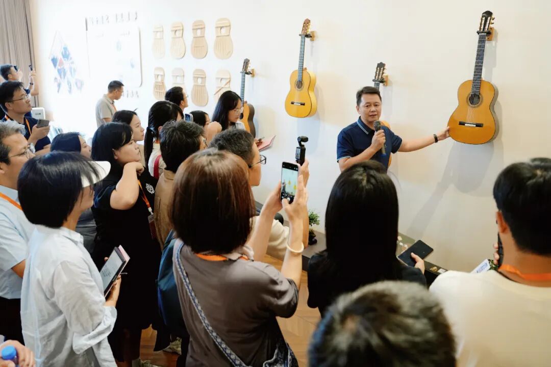 以实干为真招,以链主担当推动产业共进。企业锚定国际高端吉他制造聚集地目标,以实干落地发展规划。在产能提升上,计划新增本地员工、引入CNC数控设备与喷漆机器人,升级智能化产线,力争产量取得新突破,保障国际订单高效交付。在市场开拓上,新增高端民谣、电吉他手工产线,推动产品多元化布局,同时对接马丁等国际顶尖品牌,探索深度合作,持续拓宽国际赛道。在产业协同上,充分发挥链主企业作用,联动中音、武音等高校推进产学研融合,开展人才定向培养,策划松滋吉他音乐活动暨制琴师大赛,以赛事聚人气、提水准,持续提升“松滋吉他”的国际影响力。