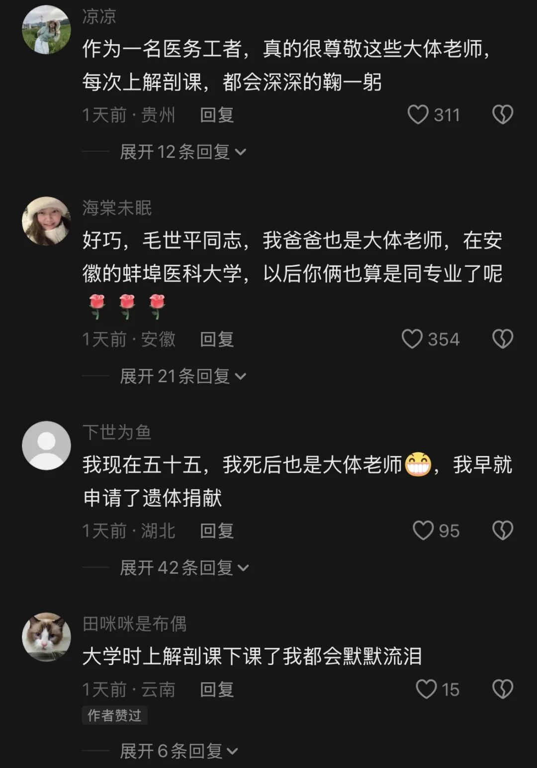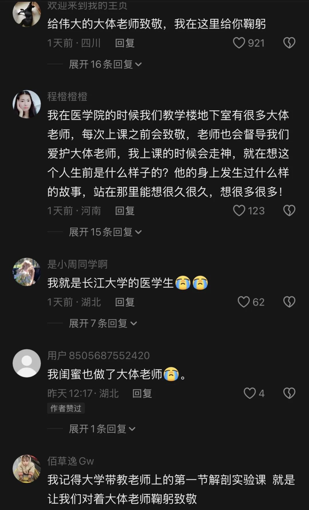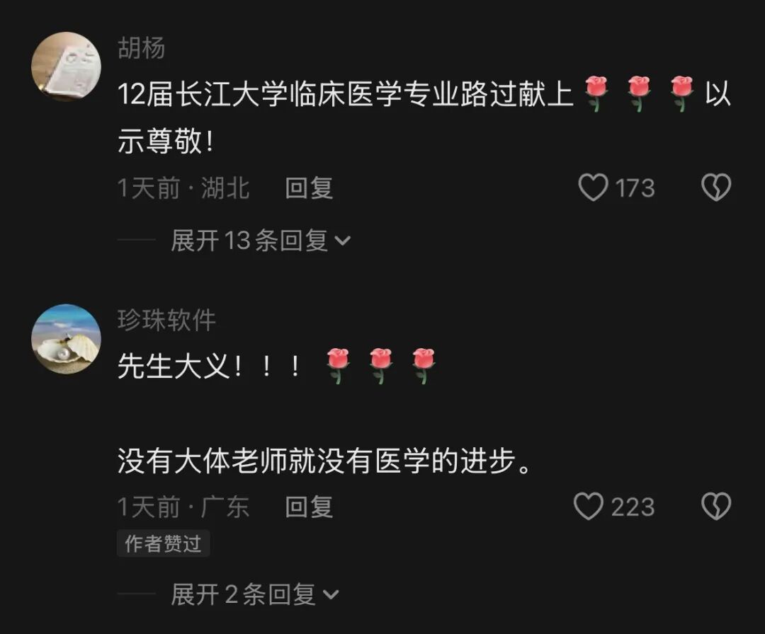 “向大体老师致敬!”“伟大的不仅仅是大体老师,还有支持他的家人!”……数百万网友涌进评论区,用最真诚的文字,送别这位平凡而伟大的老人。