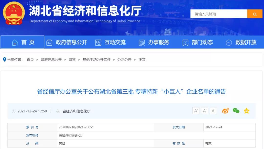 关于公布湖北省第三批专精特新“小巨人”企业名单的通告