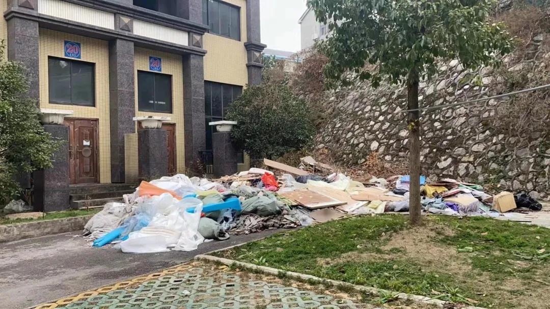 曝光问题:大量建筑垃圾和生活垃圾堆积、停车位及绿化带有垃圾